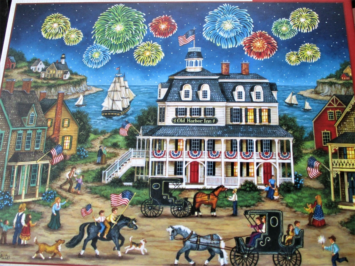 550 Piece Bonnie White Art Puzzle 034 Fireworks Finale 034 New 18 034 X 24 034 Heartland Ebay